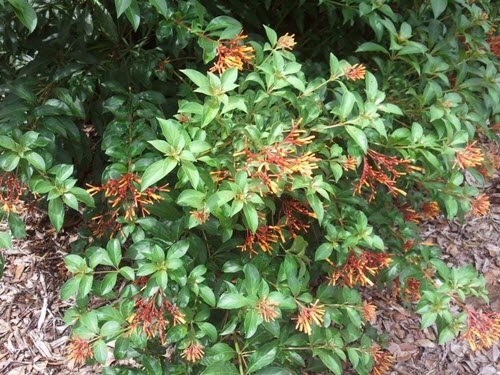 Is native to central and southern Florida. Does best in full sun but quite well in partial shade. It becomes leggy in shade. Once established, firebush is drought tolerant, but it does best with frequent watering as long as the soil has excellent drainage. It dies to the ground in winter and sprouts back in spring.