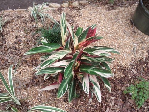 Be sure to pick a shady location. Too much sun will cause the leaves to sunburn, resulting in unsightly brown splotches. Give ‘Triostar’ the high humidity it craves. Be sure to water regularly, though try to allow the soil to dry out between waterings. Very cold sensitive hopefully, the rhizomes will be able to tough out our winters even if the tops wither and die.